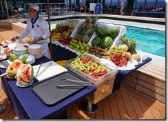 Bula! from Fiji! Spent the day in what I would like to call beautiful Fiji, but as it was overcast and drizzly most of the day I’m going to have to take the postcards word for it. They can’t all be winners. We spent $5 on a quick Taxi ride up to the Fiji museum, after sending off some postcards of a much more sunny Fiji (and one of a topless woman that Henry insisted we send to Jason and Sue – lucky them!) The Fiji Museum was interesting. I kind of kept quiet on the cannibalism stuff as I wasn’t sure how interested (freaked out) Grant and Henry would be in it all. There were a lot of implements for sale that would be interesting tabletop conversation starters. Like the smaller four pronged wooden fork like utensils used for poking and scooping out the eyeballs and the larger ones for tearing up flesh. In the museum they had the actual rudder for the H.M.S Bounty from Mutiny on the Bounty. We caught a cab back to the markets only to realize some of the really cool wooden turned bowls and things we would have liked to buy were bound to tie us up at customs. We spend the rest of the afternoon walking through the local markets with every other person shouting “BULA! BULA! come look in my stall!!” After a couple hours at the market we then got back on the ship. Tomorrow is another sea day and then Port Vila, Vanuatu.